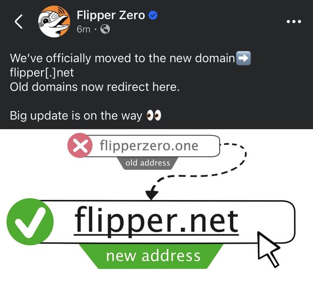 A Reddit post on r/flipperzero says Flipper Zero has moved its official website from flipperzero.one to flipper.net. The old domain now redirects users to the new address. The announcement also mentions that a major update is coming soon.